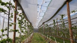 Plot of cherry trees under insect nets and rain covers